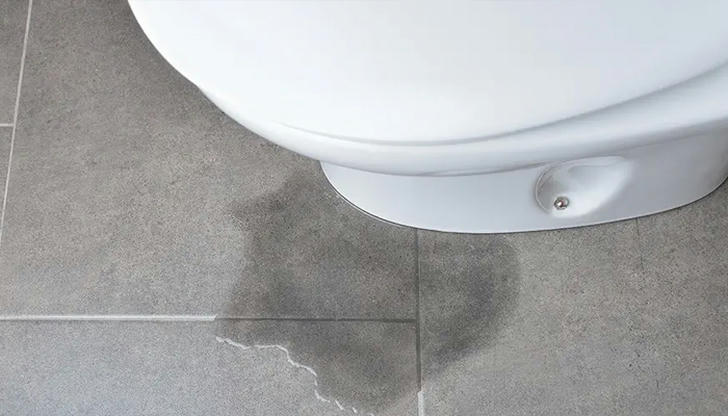 You notice water pooling around the toilet base — what should you check first?