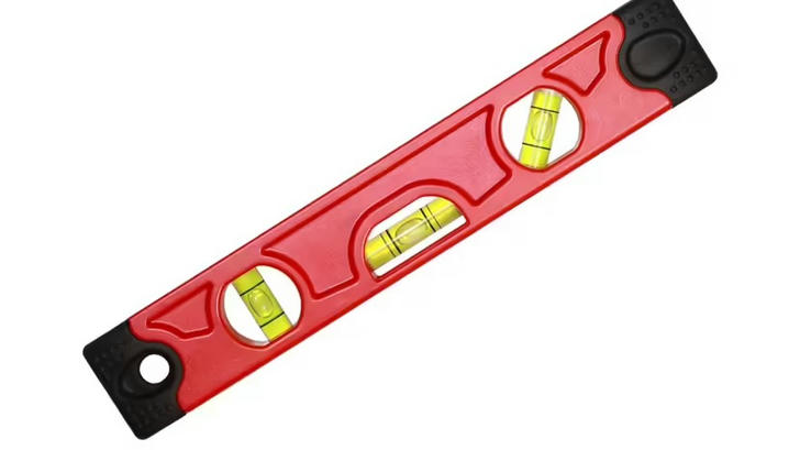 Correct Incorrect Et vaterpas, også kendt som et boblepas, sikrer lige linjer i horisontale, vertikale og diagonale justeringer ved hjælp af ethanolfyldte glasrør.